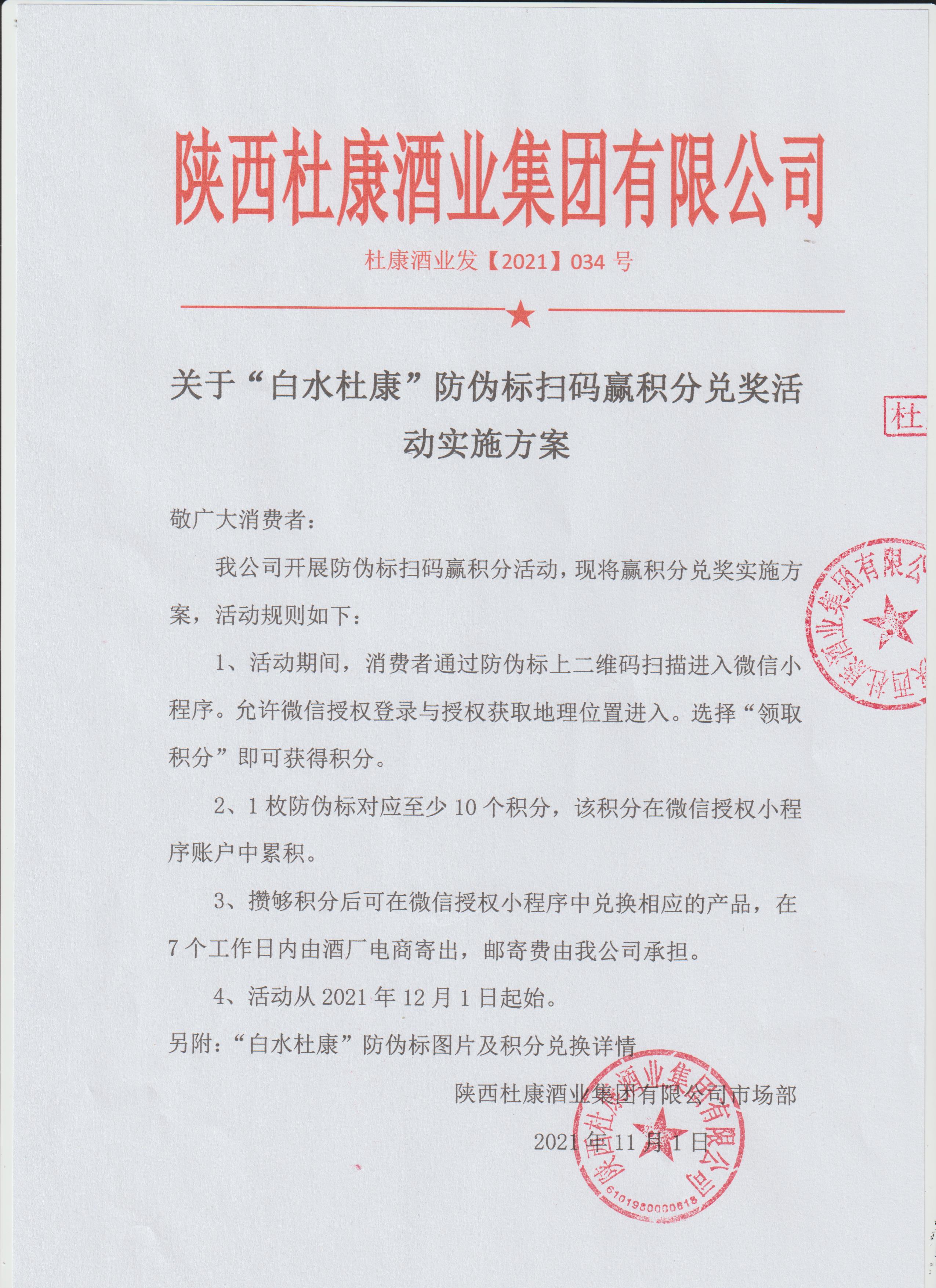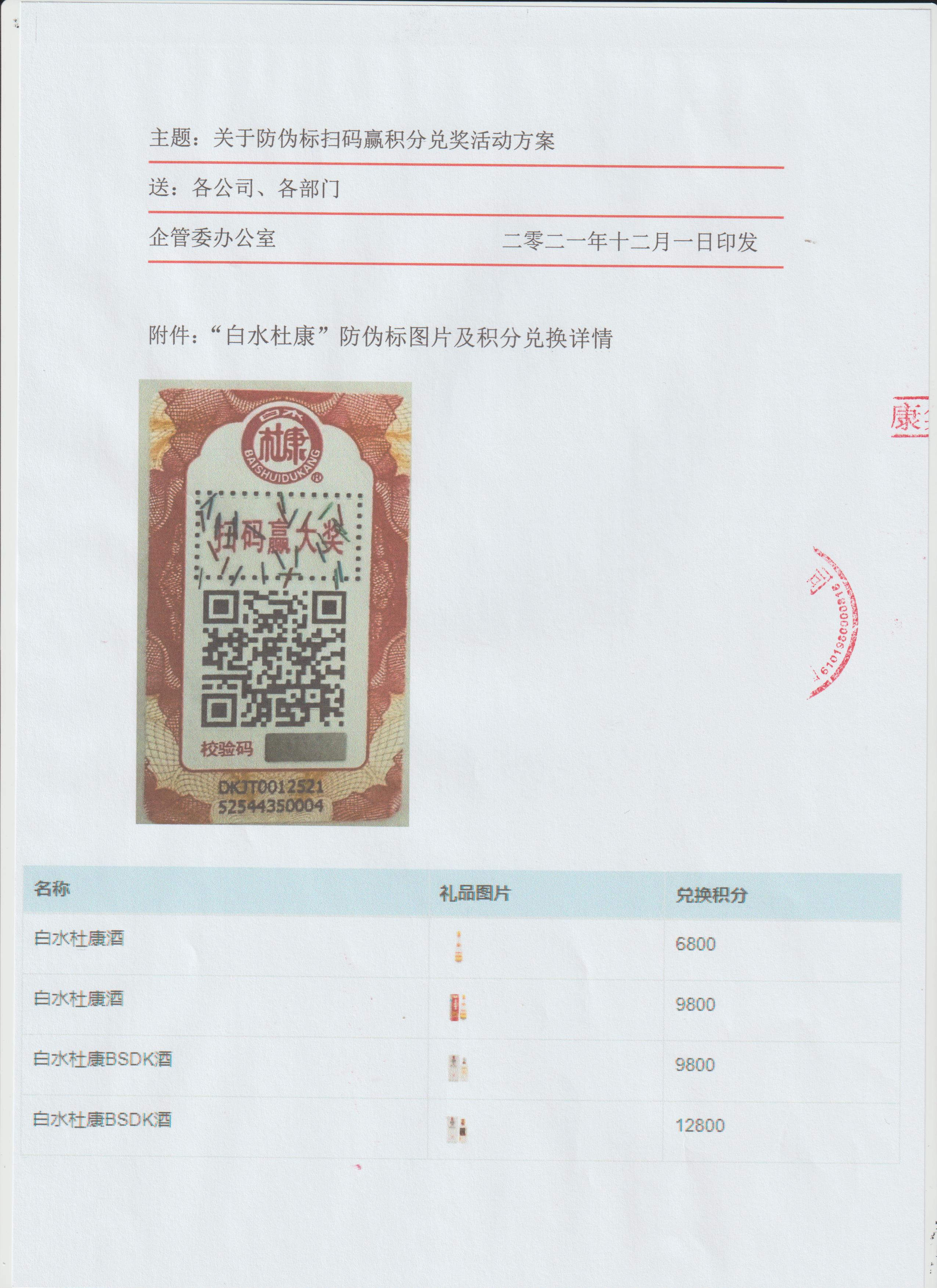 關(guān)于“白水杜康”防偽標(biāo)掃碼贏積分兌獎活動實(shí)施方案